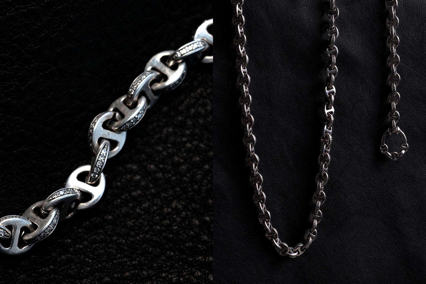 程よい存在感を放つ5mm幅のチェーンに上質な天然ダイヤモンドをモチーフのエッジに