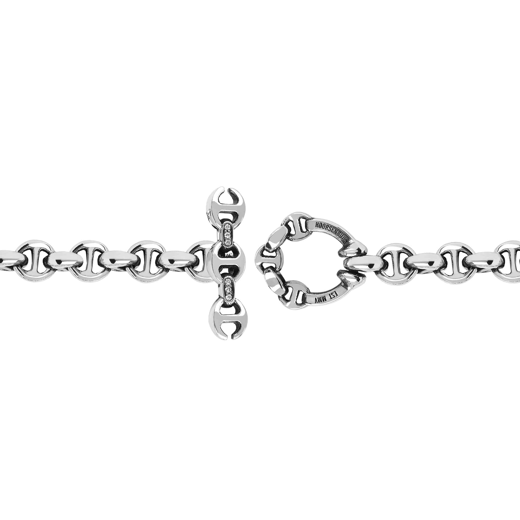 OPEN-LINK BRACELETに ダイヤモンドをあしらったペンダントを用いたデザイン。素材はSilver 925。